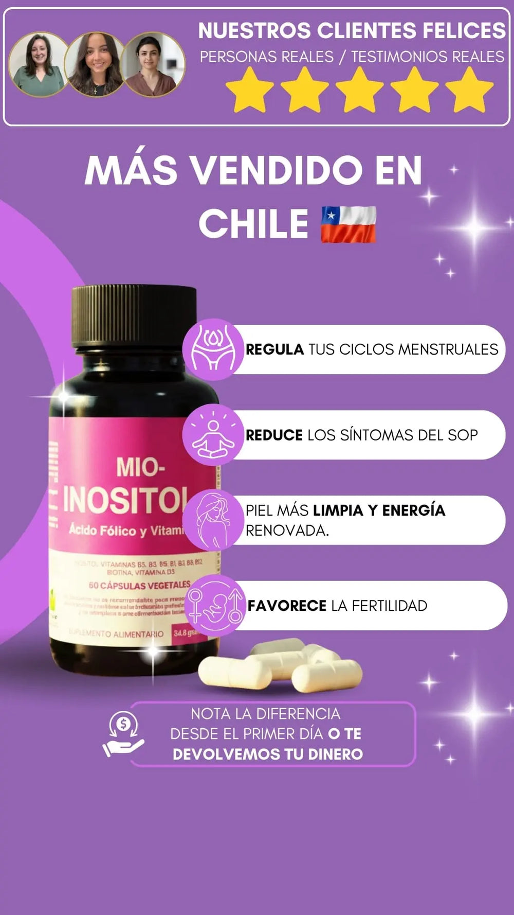 👩⚕️ Desarrollada y recomendada por especialistas en salud femenina. Miles de mujeres en Chile ya confían en su fórmula natural.