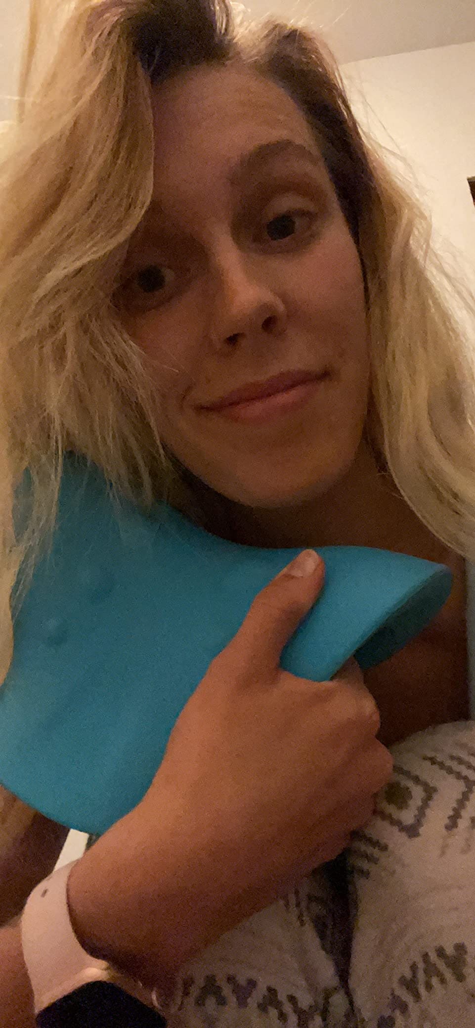 Solo recuéstate y apoya tu cuello sobre la almohadilla durante 5 a 10 minutos al día. No necesitas moverte ni hacer fuerza, solo relájate y deja que el Neck Cloud haga su trabajo.