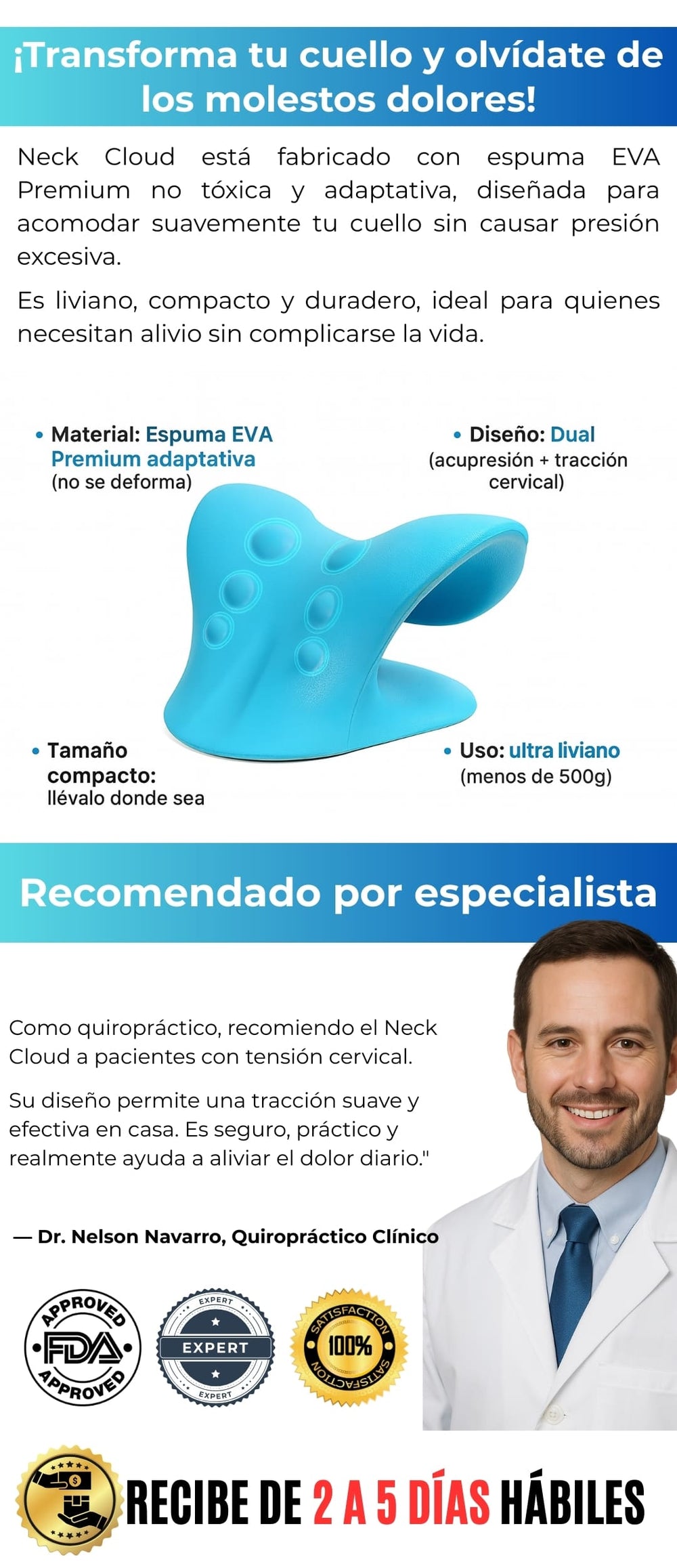 En la mayoría de los casos, sí. El Neck Cloud no reemplaza tratamientos médicos, pero muchas personas con contracturas, estrés cervical o hernias leves han reportado gran alivio. Si tienes diagnóstico clínico, es ideal consultar con tu especialista.