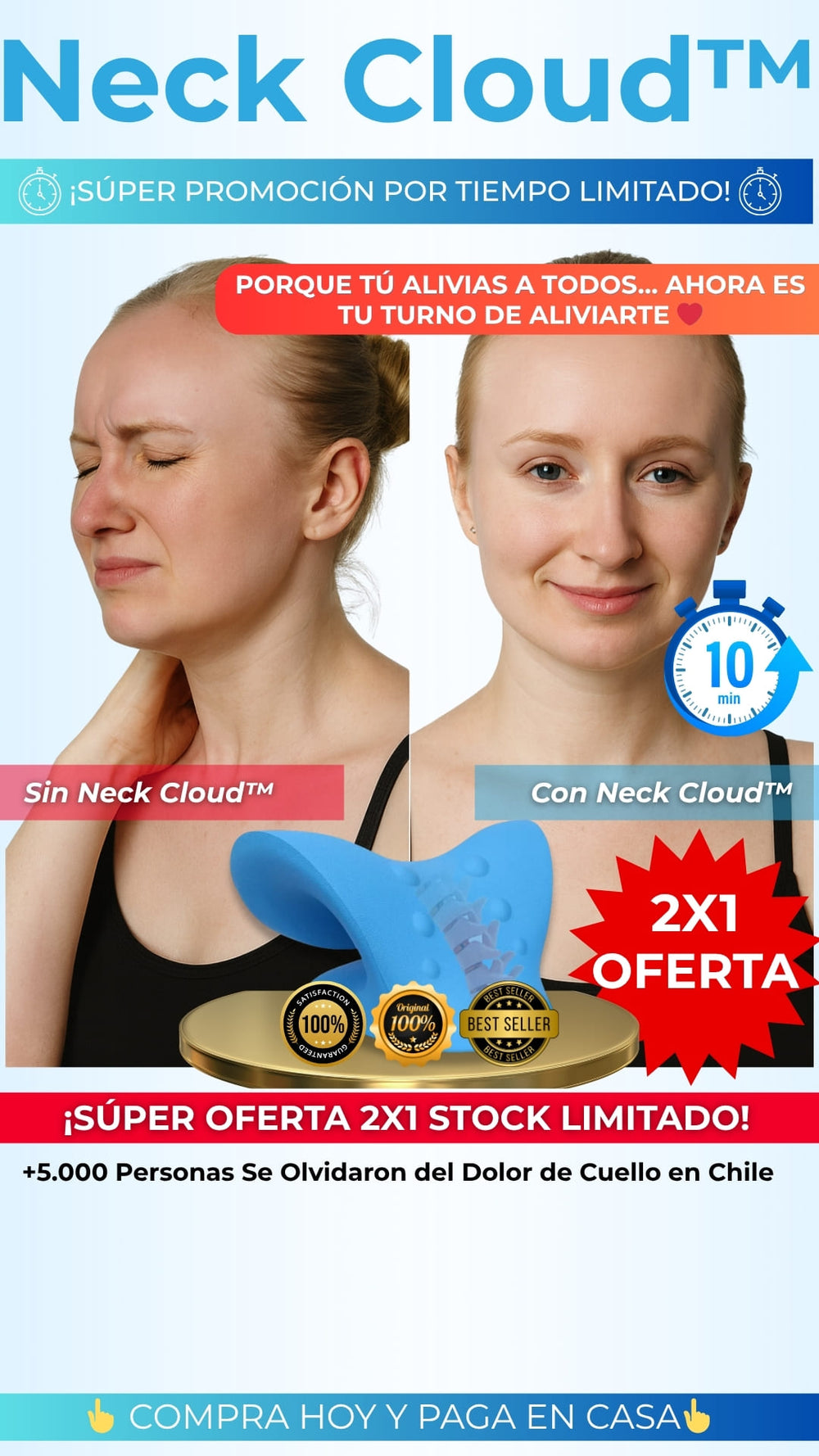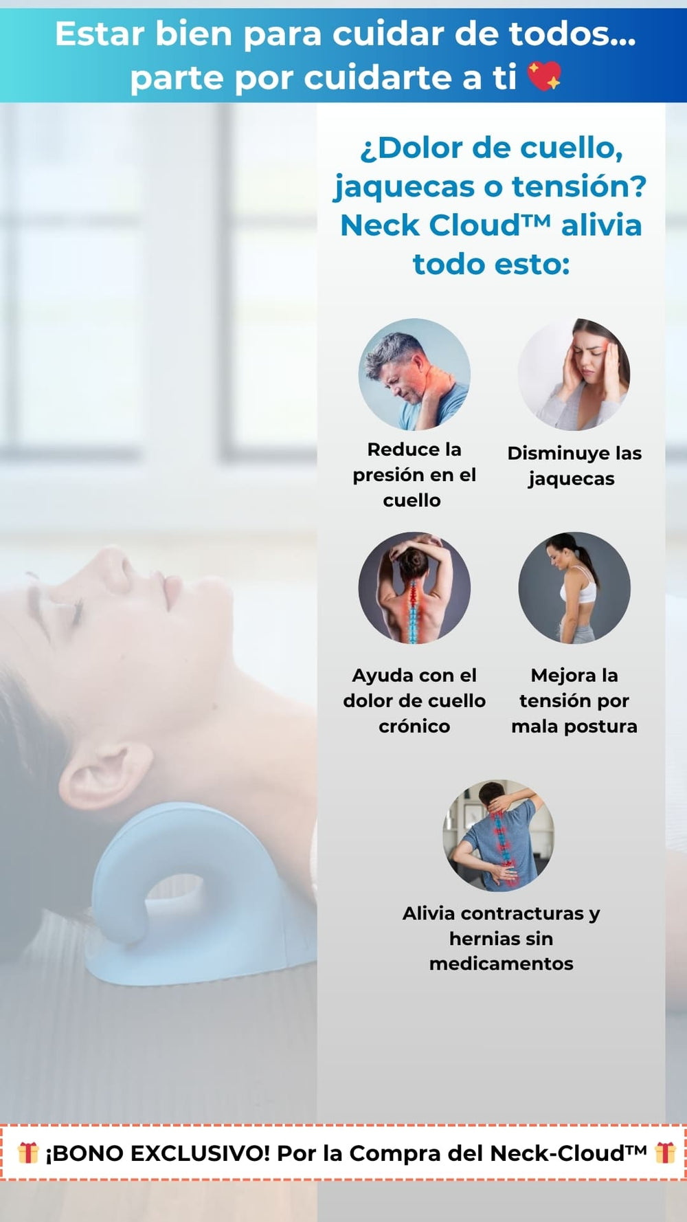 Masajes y terapias son caros y temporales. Neck Cloud™ alivia tu cuello en casa, sin gastar de más.