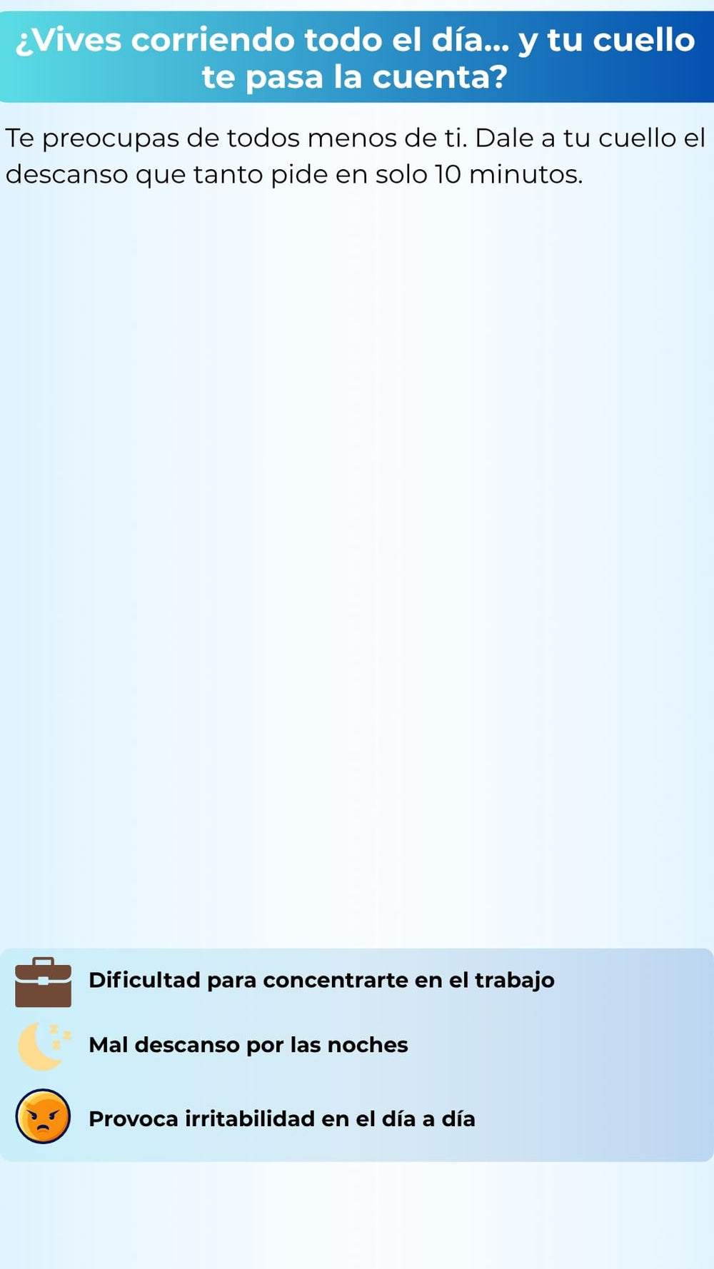 Alivio inmediato de tensión en cuello y hombros