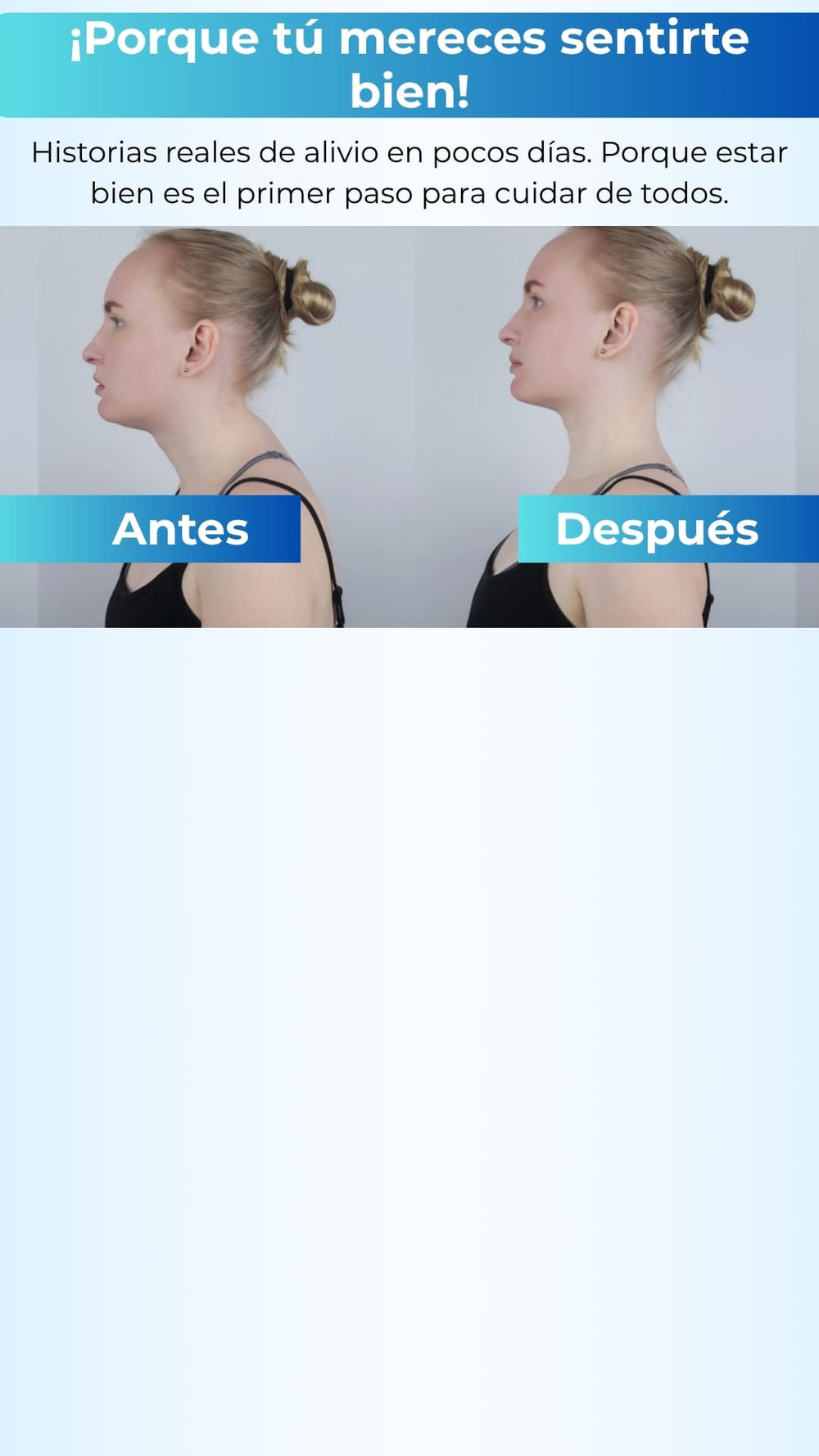 Con solo 10 minutos diarios, tu cuello empieza a recuperar su postura, eliminar la tensión acumulada y darte ese alivio que llevas tanto tiempo buscando. ¡Esto es lo que puedes lograr!