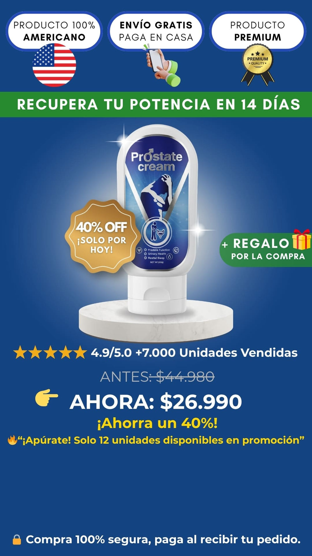 👉 Su uso constante ayuda a desinflamar la próstata, mejorar el flujo urinario y recuperar la vitalidad masculina.