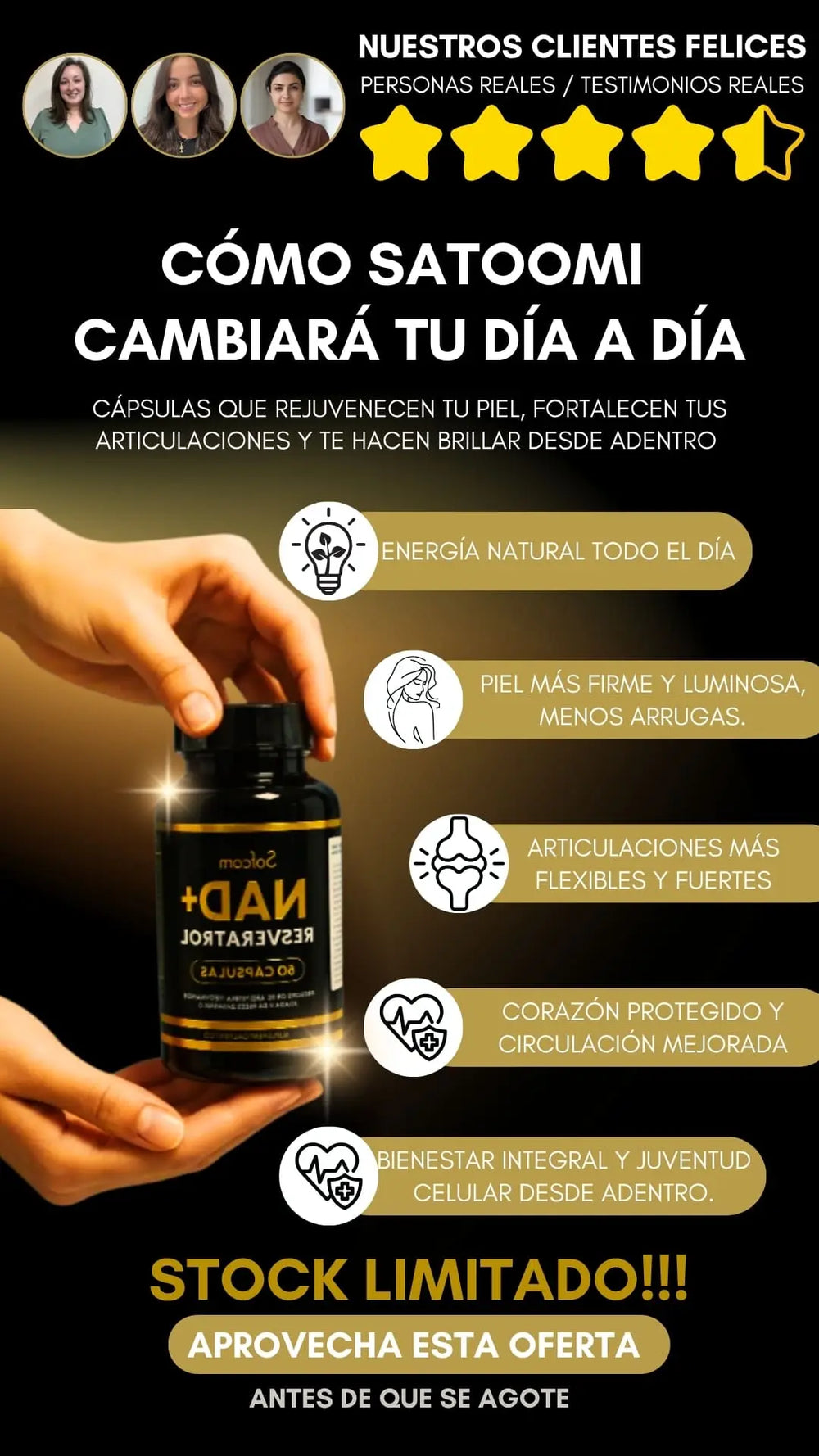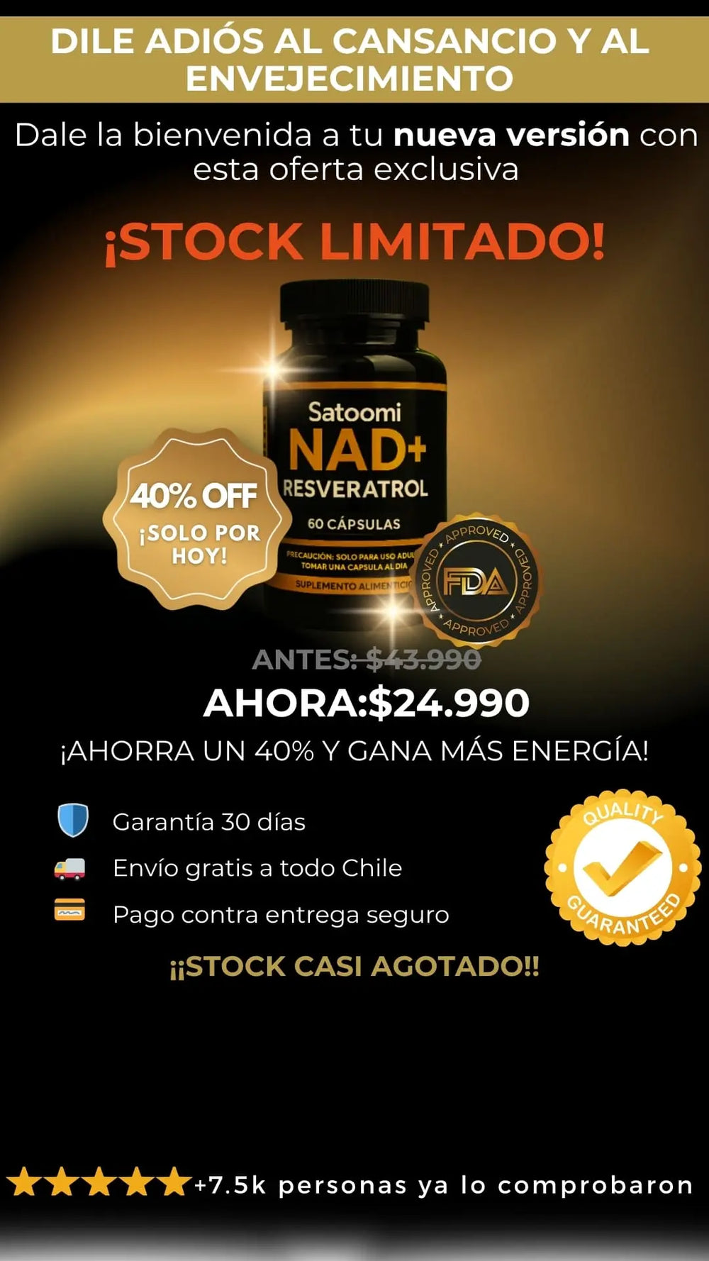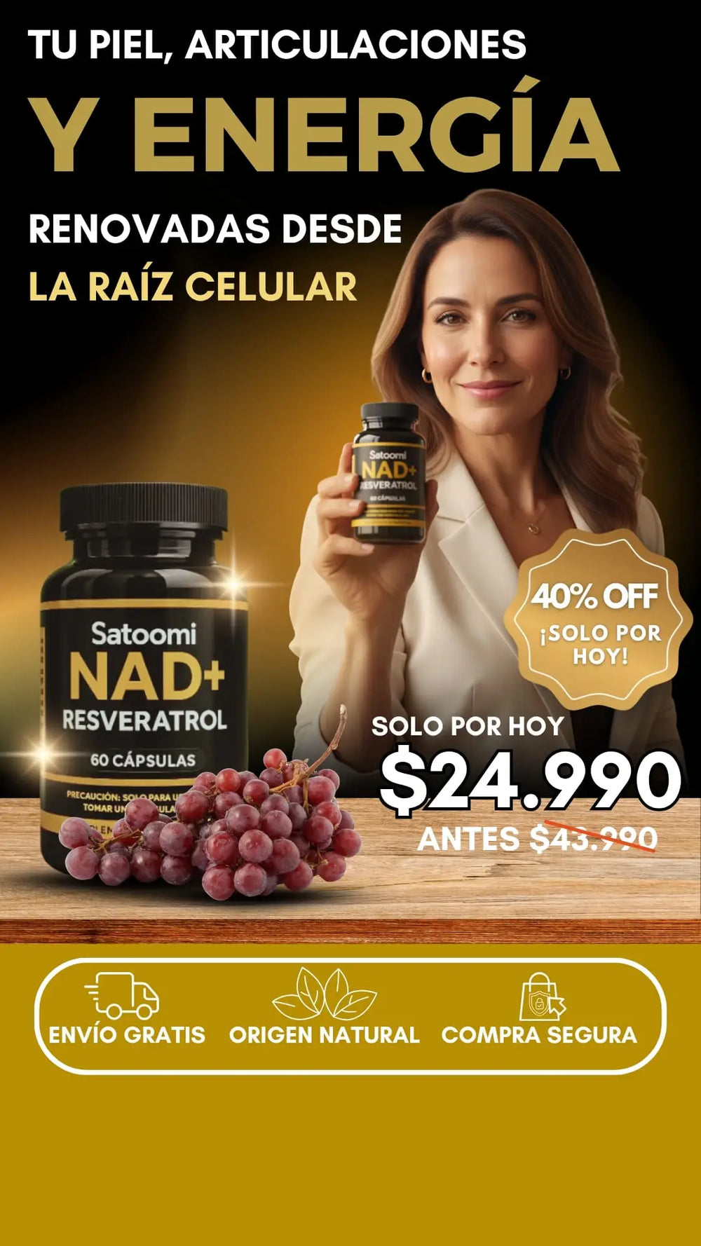El NAD+ (Nicotinamida Adenina Dinucleótido) es una molécula esencial que el cuerpo produce naturalmente y que disminuye con la edad.