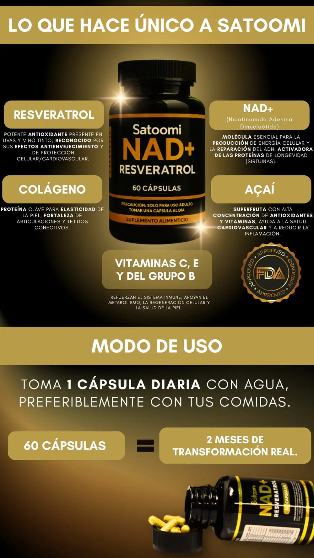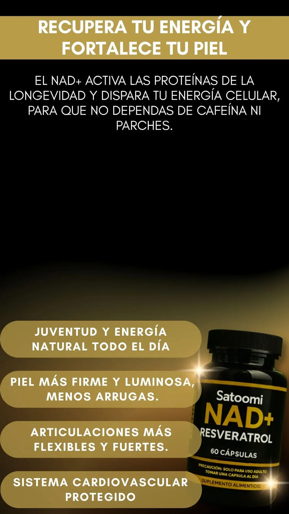 Es como la batería interna de tus células, ya que impulsa la producción de energía y activa las sirtuinas, conocidas como las “proteínas de la longevidad” 🧠💪.