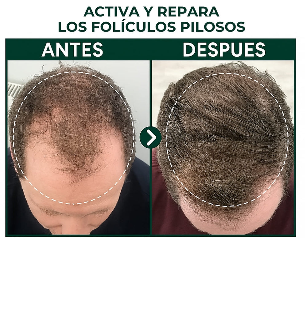 El tónico estimula el crecimiento en zonas debilitadas donde aún existen folículos activos. Si hay zonas completamente lisas por años, los resultados pueden ser más lentos o limitados.
